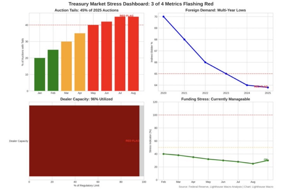 The convergence of these warning signals with $1.5 trillion in upcoming issuance suggests the market's ability to absorb supply without significant yield concessions is increasingly questionable.