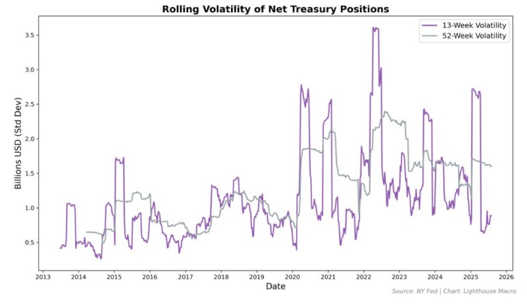 The Fed faces an impossible choice. Cutting rates risks stoking inflation fears that drive long yields higher. Holding steady means watching dealers and banks struggle under the weight of inventory. Either path leads to stress, making continued long-end weakness the highest conviction outcome regardless of Fed policy.