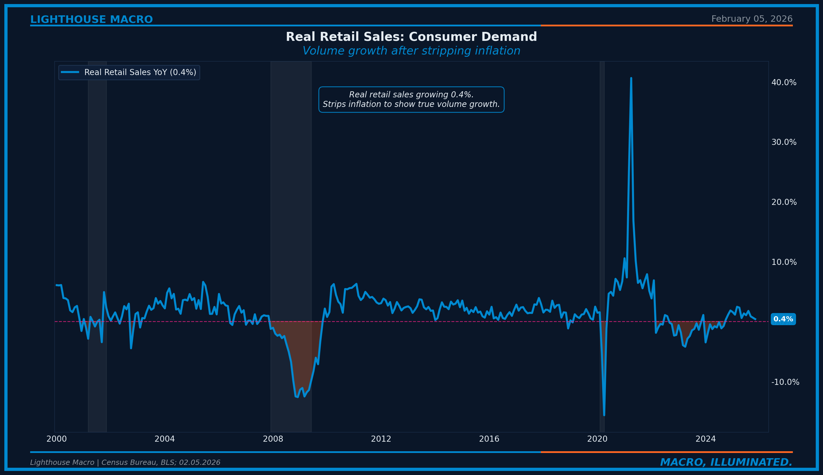 Figure 8: Real Retail Sales YoY. Adjusting for inflation, consumer spending is barely positive.